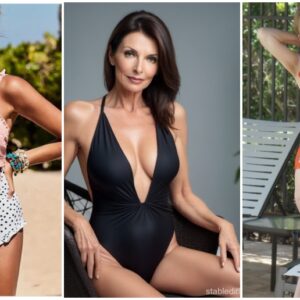A woman in a swimsuit exudes confidence, embracing her body and age with pride. She inspires others to love themselves, proving that beauty is timeless and ageless.