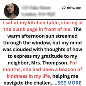 A Heartfelt Gesture, A single mother and her children create a gratitude jar to express their appreciation for a neighbor’s unwavering support during difficult times. I sat…