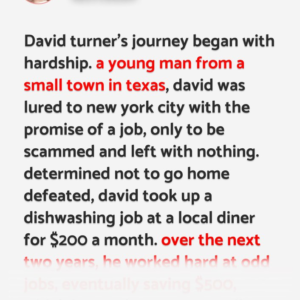 FROM PENNILESS TO POWERHOUSE: DAVID’S INCREDIBLE JOURNEY, David Turner’s journey began with hardship. A young man from a small town in Texas, David was lured to New…