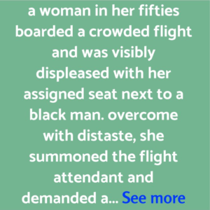 PASSENGERS CHEER AS ATTENDANT UPHOLDS DECENCY, A woman in her fifties boarded a crowded flight and was visibly displeased with her assigned seat next to a black…