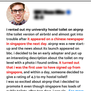 The Hostel Toilet Fiasco, HOSTEL TOILET LISTED ON AIRPNP SPARKS OUTRAGE I rented out my university hostel toilet on Airpnp (the toilet version of Airbnb) and almost…