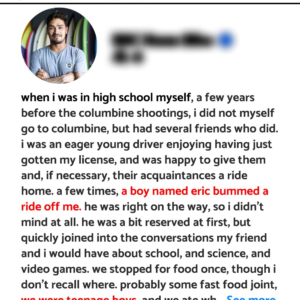 A SHOCKING CONNECTION When I was in high school myself, a few years before the Columbine shootings, I did not myself go to Columbine, but had several…