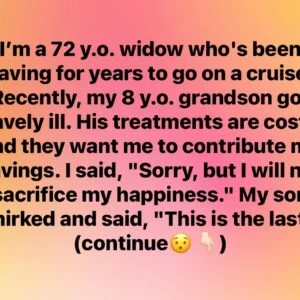 I refuse to put my happiness aside to rescue my grandson. Betty’s Dilemma Betty, a 72-year-old widow, has long saved for a dream cruise with her sister….