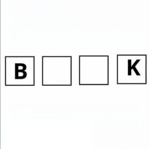 ONE word This puzzle consists of four boxes, with the first containing the letter “B” and the last containing the letter “K.” Here are a few words…
