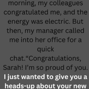 When I received the email about my promotion, I could hardly contain my excitement. After years of hard work at the marketing firm, I was finally being…