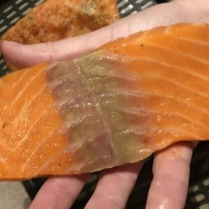 This explains why the salmon you defrosted has yellow on it.