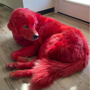Chloe, the owner of a 2-year-old Great Pyreneese dog named Dandy, has dyed his fur bright red to protect him from potential dognappers, as the breed is…