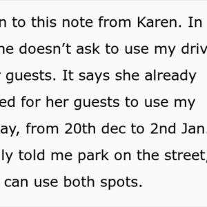 Karen neighbor leaves a note saying that her guests will park in this woman’s driveway, but she’s not having it. She took to Reddit and vented her…