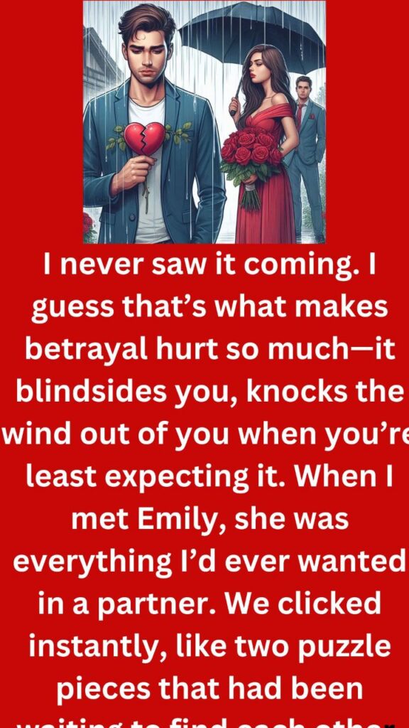 I never saw it coming. I guess that’s what makes betrayal hurt so much—it blindsides you, knocks the wind out of you when you’re least expecting it. When I met Emily, she was everything I’d ever wanted in a partner. We clicked instantly, like two puzzle pieces that had been waiting to find each other. She was smart, funny, and beautiful, and for the first time in a long time, I felt like I had found someone I could truly build a future with.My best friend, Jake, had been there from the start, cheering me on. He’d been my closest friend since high school, the kind of guy I could trust with anything. We’d been through so much together, and it felt natural to share my happiness with him. He and Emily got along well too, which made things even better—or so I thought.Looking back, there were signs, little things I brushed off because I trusted them both completely. The way Emily and Jake would exchange glances at parties, or how they seemed to share inside jokes I wasn’t part of. I figured it was just them becoming friends, nothing more. After all, why would I ever suspect that the two people I cared about most would do something to hurt me?But then, one night, everything unraveled. Emily had told me she needed some space, that she was feeling overwhelmed and wanted to spend the weekend apart. I respected her wishes, even though it hurt to be away from her. I decided to hang out with Jake instead, hoping that a night out with my best friend would help take my mind off things.We went to our usual spot, a little bar downtown where we’d spent countless nights just talking about life. But something felt off. Jake was distracted, constantly checking his phone, and when I asked him if everything was alright, he just brushed it off with a laugh and said he was fine.As the night wore on, I couldn’t shake the feeling that something wasn’t right. Maybe it was the way Jake was avoiding eye contact, or how he kept changing the subject whenever Emily’s name came up. I didn’t want to believe the thoughts creeping into my mind, but I couldn’t ignore them either.After a couple of drinks, I decided to head home early. As I walked out of the bar, I pulled out my phone and called Emily. She didn’t answer, which wasn’t unusual, but I couldn’t shake the feeling that something was wrong. On a whim, I decided to drive by her place, just to make sure she was okay.When I got there, I saw Jake’s car parked out front.My heart sank. At first, I tried to rationalize it—maybe he was just checking on her, being the good friend he always was. But deep down, I knew something was terribly wrong. I parked a few houses down and walked back to her place, my mind racing with a thousand different thoughts.As I got closer, I could see the lights on inside, and through the window, I saw them together. Jake and Emily, sitting close on the couch, her head resting on his shoulder. It wasn’t the kind of closeness that friends shared—it was something more, something that made my stomach turn.I don’t know how long I stood there, frozen in place, watching as my worst fears were confirmed. The woman I loved, the woman I thought I would spend the rest of my life with, was with my best friend. The betrayal cut deeper than anything I’d ever felt before.I finally found the strength to walk away, my mind numb and my heart shattered. I couldn’t confront them that night—I was too hurt, too angry, and too broken. I drove around for hours, trying to make sense of what had just happened, but no matter how hard I tried, I couldn’t.The next day, I confronted them both. They didn’t deny it. Emily tried to explain, saying she didn’t mean for it to happen, that she was confused and didn’t know how to tell me. Jake just stood there, silent, unable to meet my eyes. The man I thought was my closest friend had betrayed me in the worst way possible, and there was nothing left to say.