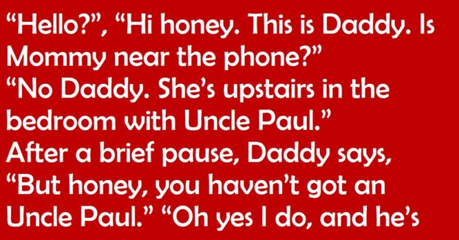 Little girl tells daddy that mom is upstairs in the bedroom with ‘Uncle Paul’ – his reply is priceless