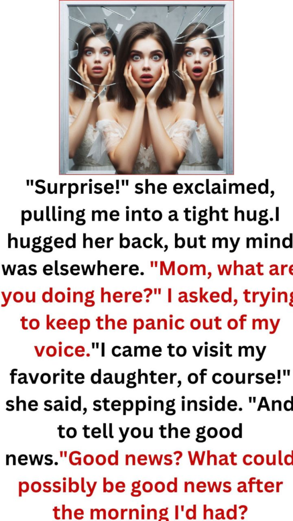 As I was processing the news, the doorbell rang. I opened the door to find my mother standing on the porch, a huge smile on her face.”Surprise!” she exclaimed, pulling me into a tight hug.I hugged her back, but my mind was elsewhere. “Mom, what are you doing here?” I asked, trying to keep the panic out of my voice.”I came to visit my favorite daughter, of course!” she said, stepping inside. “And to tell you the good news.”Good news? What could possibly be good news after the morning I’d had?