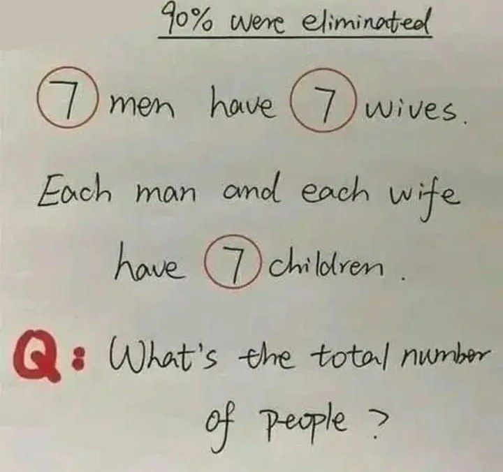 - Each man has 7 wives.