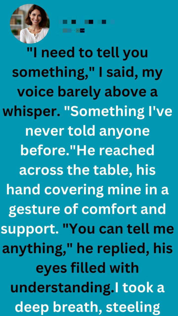 As I sat in the dimly lit café, my fingers trembling around the warm mug of coffee, I couldn’t help but feel like the walls were closing in on me. The weight of my secret hung heavy in the air, threatening to suffocate me with every passing moment. I had kept it hidden for so long, but now, faced with the piercing gaze of the man sitting across from me, I knew I could no longer keep it buried. “I need to tell you something,” I said, my voice barely above a whisper. “Something I’ve never told anyone before.”He reached across the table, his hand covering mine in a gesture of comfort and support. “You can tell me anything,” he replied, his eyes filled with understanding. I took a deep breath, steeling myself for the confession that would change everything. “I… I’m not who you think I am. I’ve been living a lie, and I can’t keep it up any longer.”His brow furrowed in confusion, but he remained silent, allowing me to continue at my own pace. “A few years ago, I was in a dark place. I had lost my job, my relationship had fallen apart, and I felt like I was drowning in a sea of despair. That’s when I met him—a charming stranger who promised me a way out of my misery.”I paused, swallowing hard against the lump in my throat. “He offered me a job, a chance to start over. But there was a catch. He needed me to take on a new identity, to become someone else entirely.”I watched as the realization dawned on his face, his eyes widening with shock. “You’re… you’re not who you say you are? “I shook my head, tears streaming down my cheeks. “No, I’m not. My name isn’t even [Your Name]. It’s a lie, a facade I’ve been living for years. “The silence that followed was deafening, and I could feel my heart pounding in my chest. I had laid bare my darkest secret, the one that had been eating away at me for so long. And now, I waited with bated breath for his reaction, praying that he would understand, that he would still see me for who I truly was. To my surprise, he reached across the table and grasped my hand tightly. “I don’t care about your past or your secrets,” he said, his voice steady and sure. “All I care about is you, and the person you are now. “In that moment, I felt a weight lift from my shoulders. I had been carrying the burden of my secret alone for so long, but now, I had someone to share it with. Someone who saw past the lies and loved me for who I was, flaws and all. As we left the café, hand in hand, I knew that our journey ahead would be filled with challenges and uncertainties. But with him by my side, I felt ready to face whatever life through our way. Because in the end, love is about accepting each other’s pasts and building a future together, one step at a time.