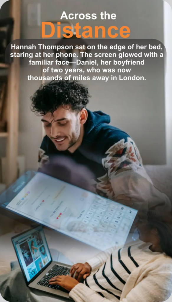 Hannah Thompson sat on the edge of her bed, staring at her phone. The screen glowed with a familiar face—Daniel, her boyfriend of two years, who was now thousands of miles away in London. They had met during college in New York, where their connection had been instant. Late-night study sessions turned into dates, and before long, they were inseparable.