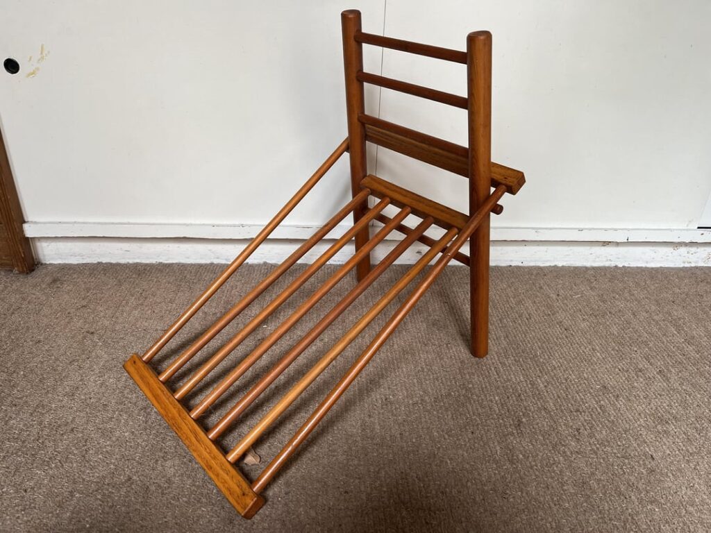 Wooden item that folds flat and looks like a weird chair. It’s about 1 m long when folded, and was found stored under a couch. Found it when cleaning out an estate, and we’re stumped. It doesn’t appear to be broken or obviously missing any pieces.