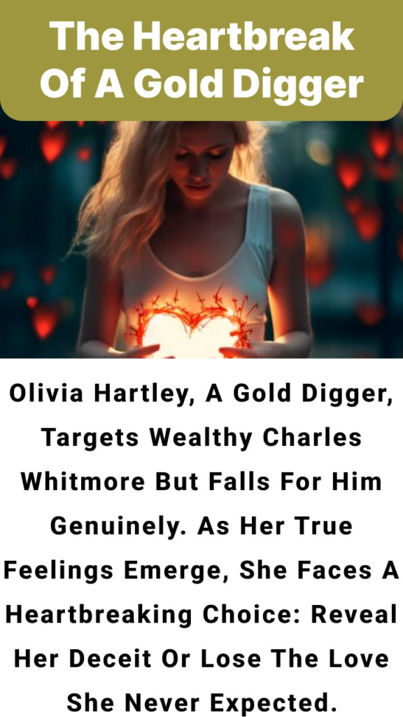 In the glittering world of high society, Olivia Hartley was known for her dazzling presence and impeccable charm, traits she used to mask her true intentions. A sophisticated gold digger with a taste for luxury, Olivia had set her sights on Charles Whitmore, a wealthy and reclusive entrepreneur. With his vast fortune and hidden vulnerabilities, Charles seemed like the perfect target. Olivia, donning an array of glamorous outfits and enchanting smiles, wove a web of allure around him, intent on winning his affections and securing her place in the lap of luxury.