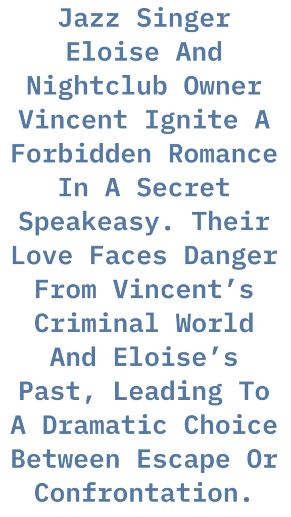 In the shadowy depths of a clandestine speakeasy beneath the streets of New York, Eloise Hart, a brilliant but secretive jazz singer, met Vincent Drake, a mysterious and brooding nightclub owner. Eloise, in her early thirties, performed nightly in the hidden venue, where her sultry voice and enigmatic aura captivated the audience. Vincent, a man in his late thirties, was both feared and revered for his control over the underground world, but his cold exterior masked a troubled soul. Their initial encounters were charged with unspoken tension as Eloise’s haunting melodies drew Vincent’s attention and curiosity.