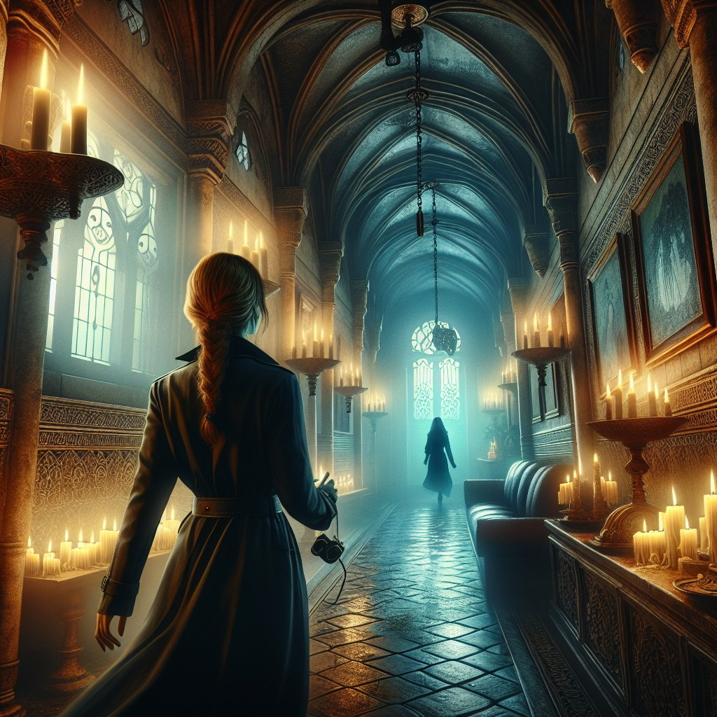 As the days passed, Sophia felt an undeniable presence watching her, especially in the grand ballroom. One evening, while reading by the fireplace, she felt a sudden chill and looked up to see a ghostly figure—Lord Thomas himself, as handsome as he was heartbroken. Instead of fear, Sophia felt a strange connection to him. Thomas revealed that he was bound to the mansion by a curse, unable to move on until he reunited with his lost love, Eliza. Drawn by his tragic tale, Sophia promised to help him find peace, even as her own feelings for the ghostly lord deepened.