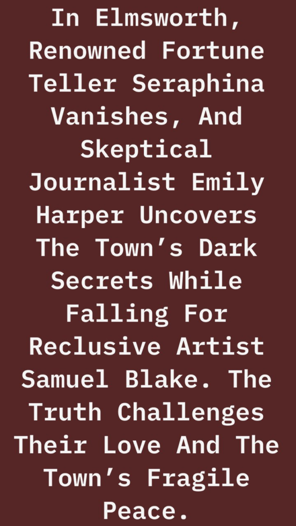 In the quiet town of Elmsworth, renowned fortune teller Seraphina Caldwell vanishes without a trace, leaving behind a swirl of rumors and fear. Emily Harper, a skeptical journalist with a penchant for unraveling mysteries, is thrust into the heart of the investigation. As she delves deeper into Seraphina’s disappearance, Emily discovers that the town is a labyrinth of dark secrets, each more disturbing than the last.