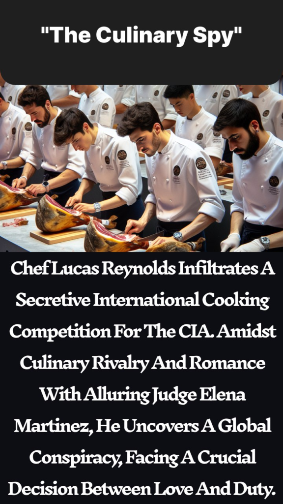 In the bustling culinary world, renowned chef Lucas Reynolds, a master of French cuisine, is living a quiet life when he’s recruited by the CIA. His mission: infiltrate the prestigious international cooking competition, “The Gastronomy Games,” which secretly serves as a cover for high-stakes espionage. The organizers, including the enigmatic and alluring judge Elena Martinez, are rumored to be involved in dangerous international plots.