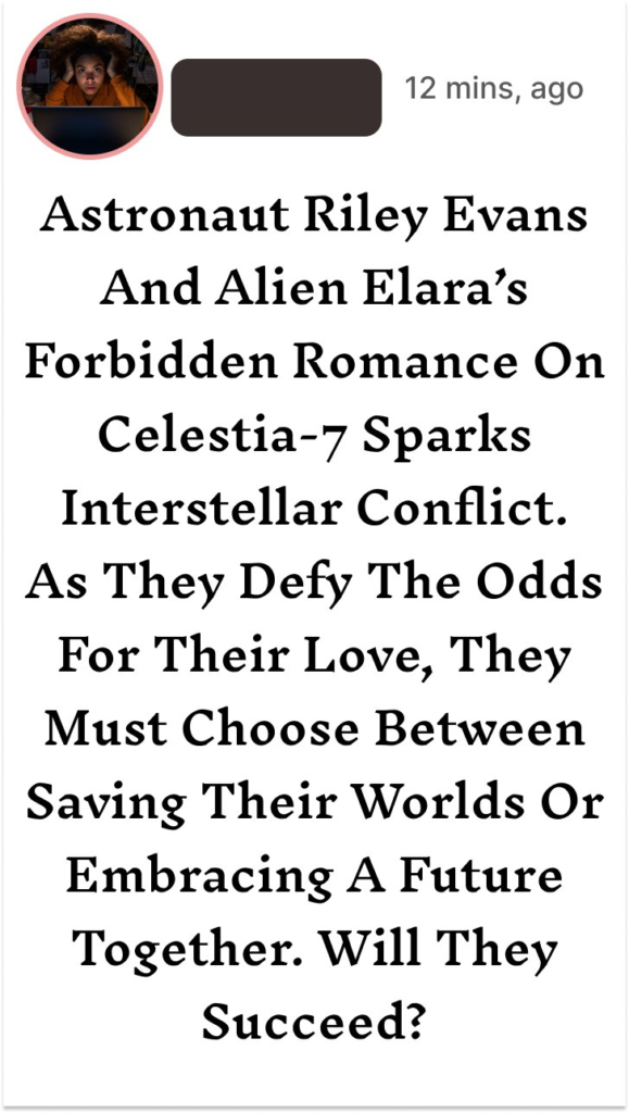 On the distant, shimmering world of Celestia-7, astronaut Captain Riley Evans found his mission taking an unexpected turn. As he explored the planet’s breathtaking landscapes, he encountered Elara, an enigmatic alien with luminescent skin and eyes that held galaxies. Despite the vast differences between their worlds, an undeniable bond formed between them. Their clandestine meetings under the stars turned into a passionate romance that transcended the boundaries of space and species.