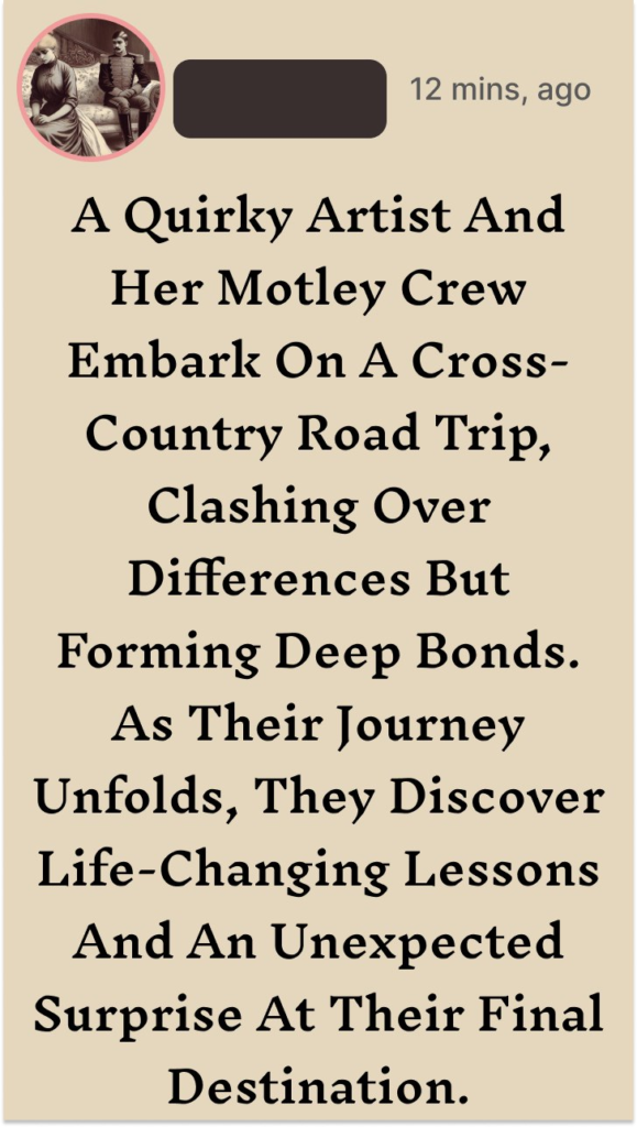 When quirky artist Lily Foster wins a cross-country road trip contest, she is unexpectedly joined by a motley crew of strangers. There’s Sam, a grumpy accountant with a hidden passion for karaoke; Mia, a bubbly travel blogger fleeing from a broken engagement; and Tom, a retired marine seeking a new purpose. Their journey across America starts off awkward and chaotic, with each member clashing over their vastly different personalities and life goals.