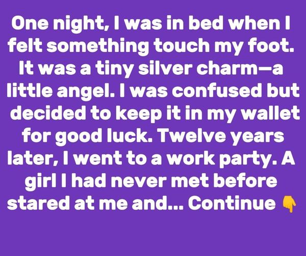 One night, while I was in bed, I felt something touch my foot. It was a tiny silver charm—a little angel. I was confused but kept it in my wallet for good luck. Twelve years later, while living in another country, I went to a work party. A girl I was meeting for the first time looked at me and said I seemed very familiar. I told her she must be mistaken because I had never seen her before and had moved to France from the U.S. about a year ago.
