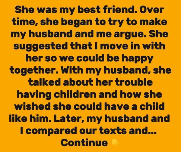 With my husband, she talked about her trouble having children and how she wanted a baby like him, so she needed a sperm donor. My husband and I compared texts and realized she wanted to use his sperm to have a baby with me. When we confronted her, she denied everything and became very angry.