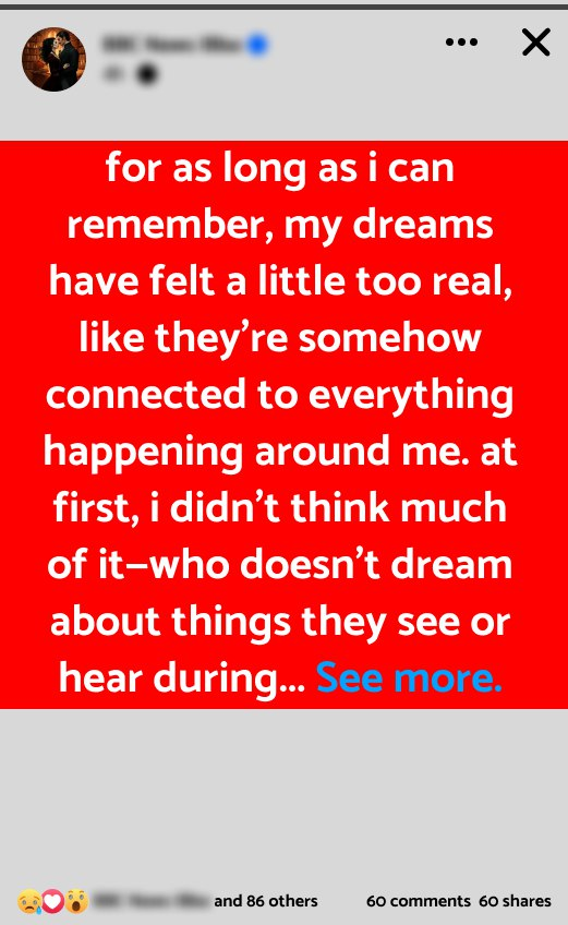 For as long as I can remember, my dreams have felt a little too real, like they’re somehow connected to everything happening around me. At first, I didn’t think much of it—who doesn’t dream about things they see or hear during the day? But over time, it started to feel like my dreams weren’t just random. It was as if my mind was picking up on everything around me and replaying it in vivid detail while I slept.