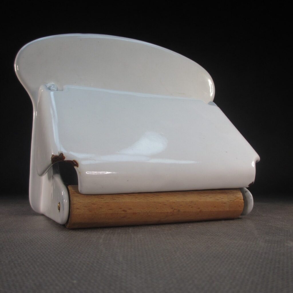 Functionally, these holders were straightforward. The paper roll was either suspended on a rod or placed in a bracket, allowing users to easily access the paper. Many vintage holders also included a cover or lid to protect the paper from dust and moisture, a practical feature that also added to their visual appeal.