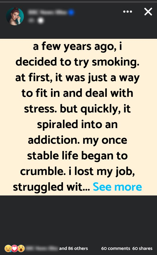 A few years ago, I decided to try smoking. At first, it was just a way to fit in and deal with stress. But quickly, it spiraled into an addiction. My once stable life began to crumble. I lost my job, struggled with relationships, and faced constant health issues. The emotional toll was immense—I felt like I was betraying myself and everyone who cared about me. Every day became a battle between the urge to smoke and the guilt of what it was doing to my life. The fear of starting over was overwhelming. I knew I needed help but was terrified of the change. I tried to quit several times, but each failure felt like a step backward, making it harder to stay motivated. I’m now at a crossroads. Do I continue fighting this addiction and try to rebuild my life, or do I let it consume me completely? I feel lost and unsure about my next steps. Your advice would mean a lot—should I stay in the fight and seek more support, or is it time to make a drastic change and leave this life behind for a fresh start?