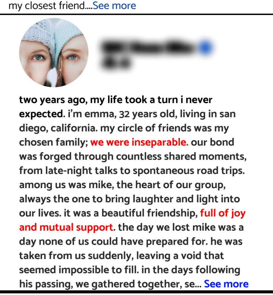 Two years ago, my life took a turn I never expected. I’m Emma, 32 years old, living in San Diego, California. My circle of friends was my chosen family; we were inseparable. Our bond was forged through countless shared moments, from late-night talks to spontaneous road trips. Among us was Mike, the heart of our group, always the one to bring laughter and light into our lives. It was a beautiful friendship, full of joy and mutual support.
