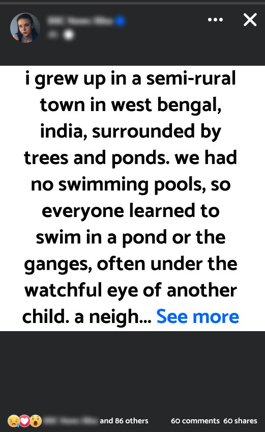 I grew up in a semi-rural town in West Bengal, India, surrounded by trees and ponds. We had no swimming pools, so everyone learned to swim in a pond or the Ganges, often under the watchful eye of another child. A neighbor taught about ten of us kids how to swim, and we would visit the pond daily to splash around while my mom, ever paranoid about water, kept a watchful eye from the sidelines.