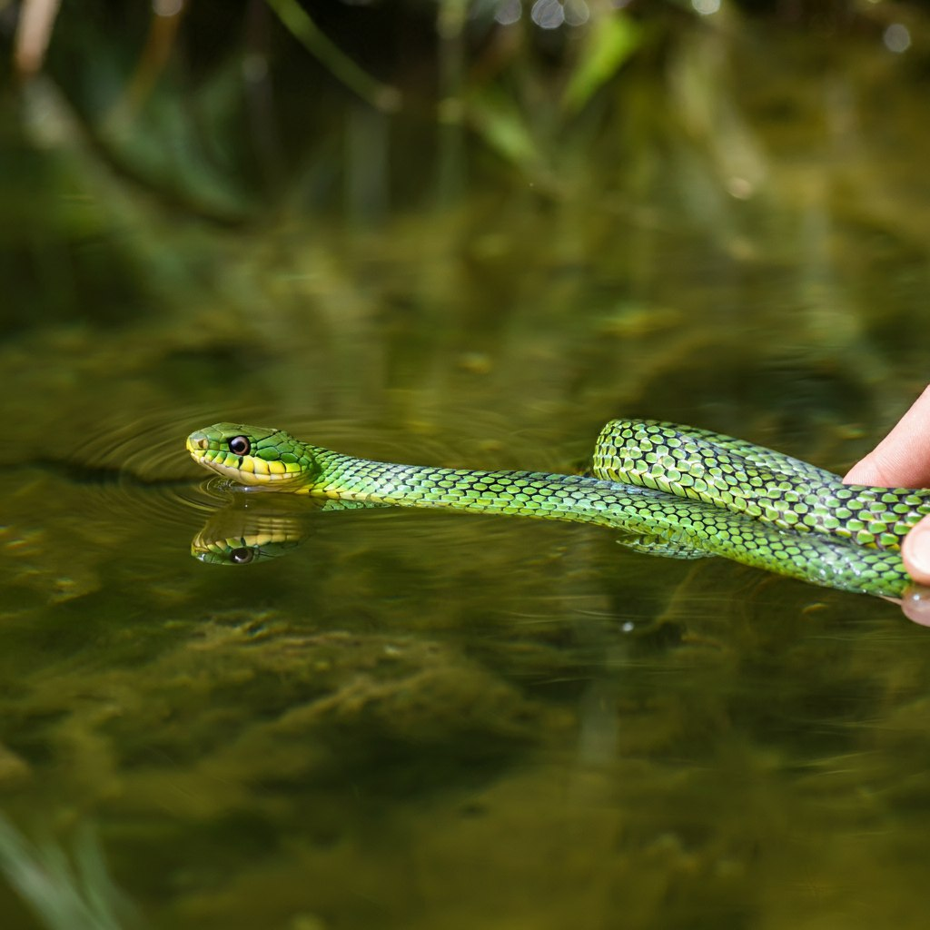 Curiosity got the better of me, and I looked down. To my horror, I realized I wasn’t wringing out a frock but a snake, its mouth open and speckled yellow. I let out a loud scream, threw the snake back into the water, and ran away in a panic.
