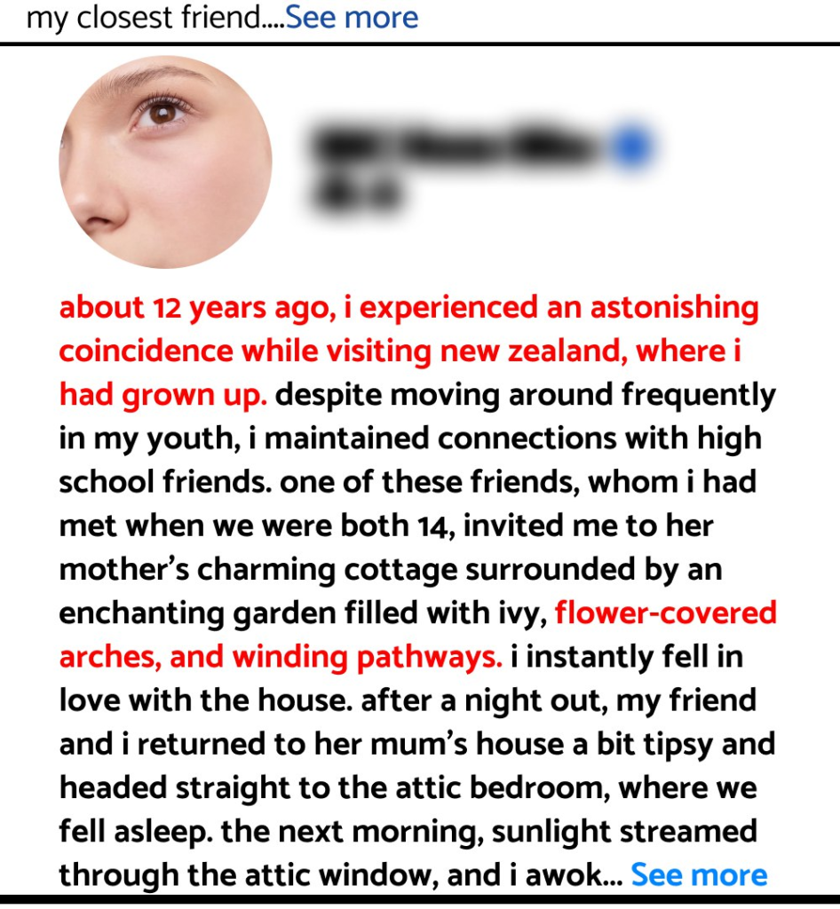 THEY DISCOVERED ANCESTRAL HOME IN FRIEND’S COTTAGE IN NZ. About 12 years ago, I experienced an astonishing coincidence while visiting New Zealand, where I had grown up. Despite moving around frequently in my youth, I maintained connections with high school friends. One of these friends, whom I had met when we were both 14, invited me to her mother’s charming cottage surrounded by an enchanting garden filled with ivy, flower-covered arches, and winding pathways. I instantly fell in love with the house. After a night out…
