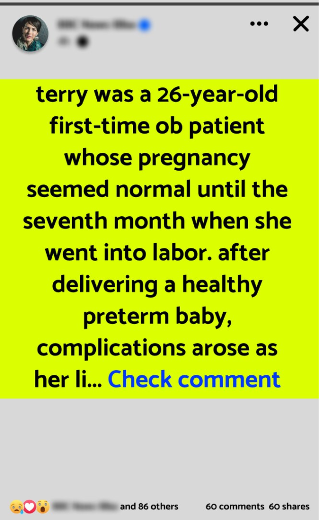 Terry was a 26-year-old first-time OB patient whose pregnancy seemed normal until the seventh month when she went into labor. After delivering a healthy preterm baby, complications arose as her liver ceased functioning—a condition known as Acute Liver Atrophy of Pregnancy. At that time, the prognosis for such a disease was grim, with no known survivors in the medical literature. Terry’s condition spiraled, leading to multiple life-threatening emergencies, but she survived after three emergency surgeries. One fateful day, after a heartfelt conversation with her comatose body, she miraculously awoke, recovering completely within a year. another patient arrive, Terry was a 26-year-old first-time OB patient whose pregnancy seemed normal until the seventh month when she went into labor. After delivering a healthy preterm baby, complications arose as her liver ceased functioning—a condition known as Acute Liver Atrophy of Pregnancy. At that time, the prognosis for such a disease was grim, with no known survivors in the medical literature. Terry’s condition spiraled, leading to multiple life-threatening emergencies, but she survived after three emergency surgeries. One fateful day, after a heartfelt conversation with her comatose body, she miraculously awoke, recovering completely within a year.