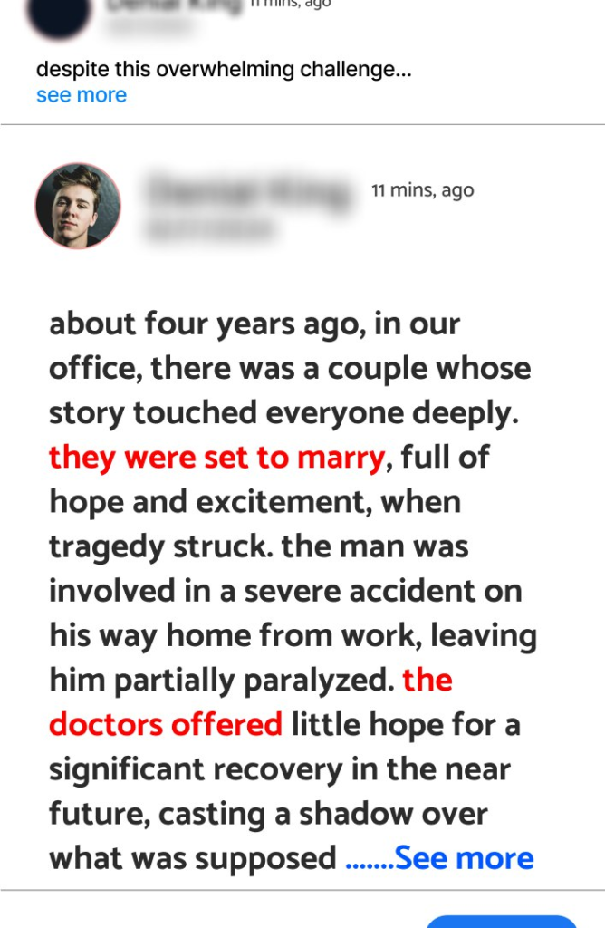 About four years ago, in our office, there was a couple whose story touched everyone deeply. They were set to marry, full of hope and excitement, when tragedy struck. The man was involved in a severe accident on his way home from work, leaving him partially paralyzed. The doctors offered little hope for a significant recovery in the near future, casting a shadow over what was supposed to be a joyful time.