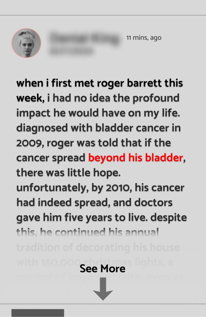 The Miracle That Changed My Life, FAITH TURNED A CANCER DIAGNOSIS INTO A MIRACLE, When I first met Roger Barrett this week, I had no idea the profound impact he would have on my life. Diagnosed with bladder cancer in 2009, Roger was told that if the cancer spread beyond his bladder, there was little hope. Unfortunately, by 2010, his cancer had indeed spread, and doctors gave him five years to live. Despite this, he continued his annual tradition of decorating his house with 150,000 Christmas lights, a symbol of hope and faith, even as his health worsened. One December evening, a…