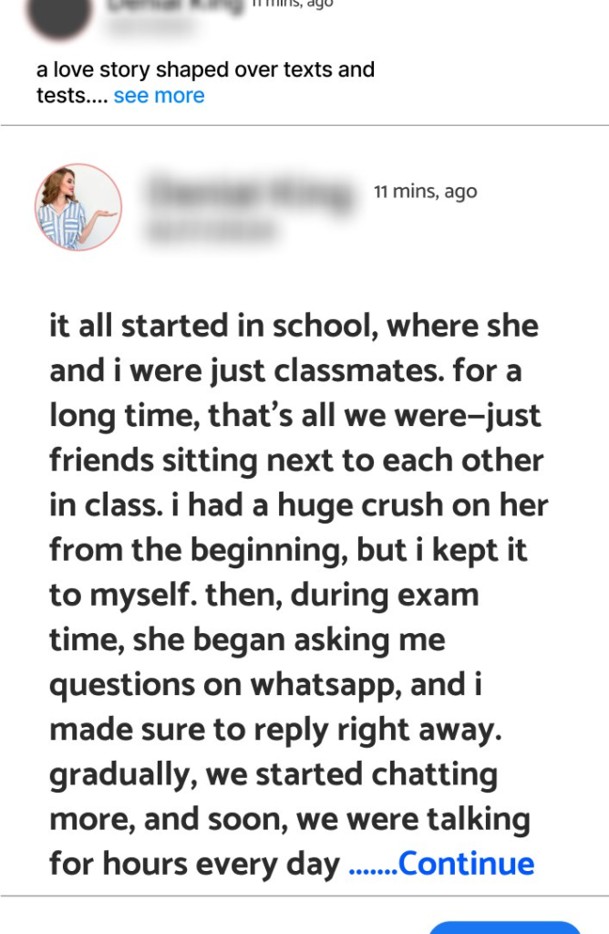 It all started in school, where she and I were just classmates. For a long time, that’s all we were—just friends sitting next to each other in class. I had a huge crush on her from the beginning, but I kept it to myself. Then, during exam time, she began asking me questions on WhatsApp, and I made sure to reply right away. Gradually, we started chatting more, and soon, we were talking for hours every day. We became close friends, sharing everything.