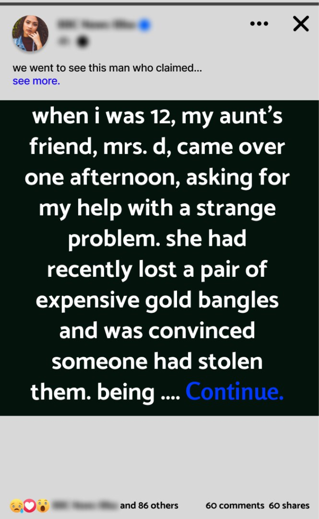 When I was 12, my aunt’s friend, Mrs. Davis, came over one afternoon, asking for my help with a strange problem. She had recently lost a pair of expensive gold bangles and was convinced someone had stolen them. Being a huge fan of mystery books like Nancy Drew and Hardy Boys, I was thrilled at the idea of solving a real-life case. The next day, Mrs. Davis took me to a small town in the U.S., where she told me we’d meet someone with “special powers” who could help me figure out who took the bangles.