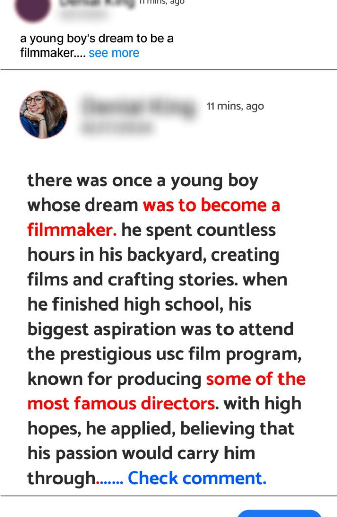 There was once a young boy whose dream was to become a filmmaker. He spent countless hours in his backyard, creating films and crafting stories. When he finished high school, his biggest aspiration was to attend the prestigious USC film program, known for producing some of the most famous directors. With high hopes, he applied, believing that his passion would carry him through.