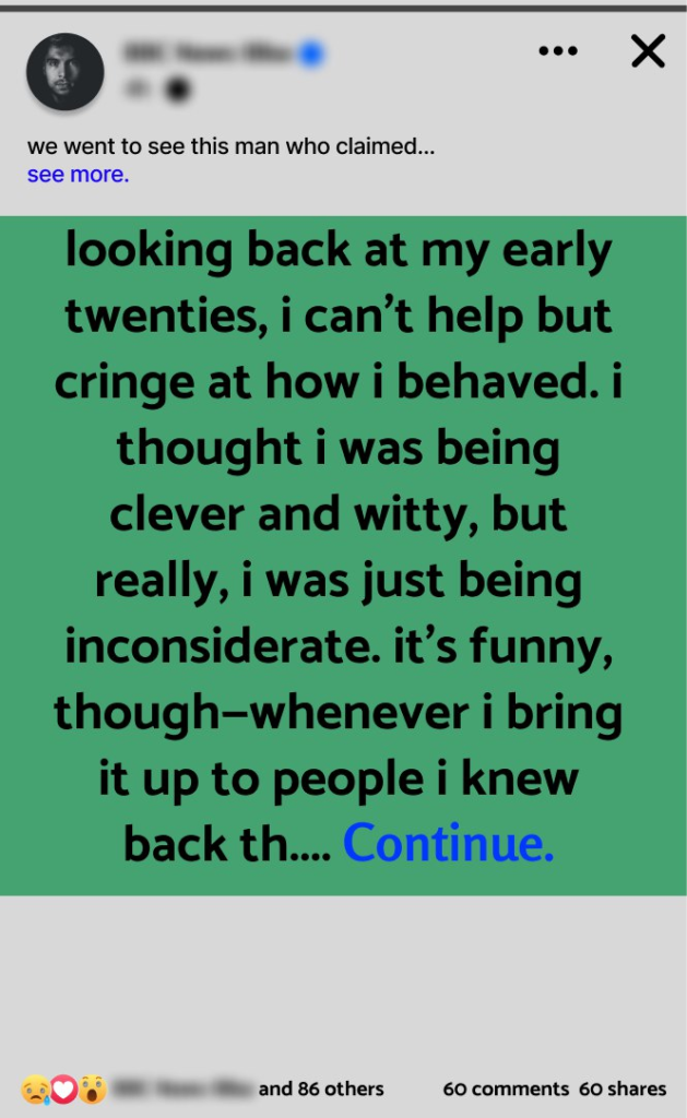 LEARNING TO LISTEN AND GROW FROM MISTAKES. Looking back at my early twenties, I can’t help but cringe at how I behaved. I thought I was being clever and witty, but really, I was just being inconsiderate. It’s funny, though—whenever I bring it up to people I knew back then, they say I wasn’t that bad. But I remember specific moments that still make me uncomfortable. These were times when I was more interested in showing off than actually being a decent human being. One moment that…