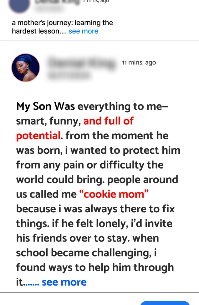 My son was everything to me—smart, funny, and full of potential. From the moment he was born, I wanted to protect him from any pain or difficulty the world could bring. People around us called me “cookie mom” because I was always there to fix things. If he felt lonely, I’d invite his friends over to stay. When school became challenging, I found ways to help him through it. I even homeschooled him to make things easier. My whole life was about making sure he was happy and free from struggle.