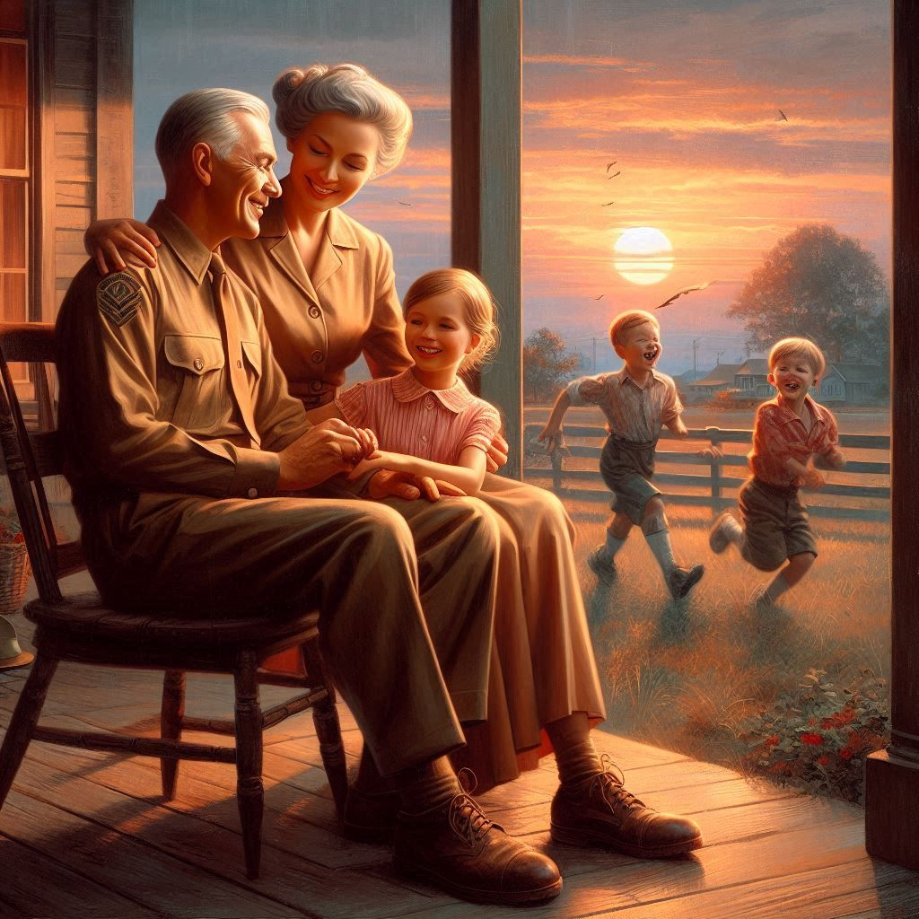 But the war was relentless, and soon the toll began to show. James returned from the front lines, a shell of the man Clara had fallen in love with. The nightmares haunted him, and the weight of survivor’s guilt pressed heavily on his shoulders. Clara watched helplessly as the vibrant light in his eyes dimmed, replaced by a haunting darkness.Determined not to lose him, Clara became his anchor. She held his hand through the sleepless nights, encouraging him to talk about his fears and pain. “You’re not alone,” she would whisper, her voice steady and reassuring. Together, they navigated the rough waters of healing, seeking support from fellow veterans and therapists who understood the scars that war leaves behind.Their love, once ignited by passion, transformed into a resilient partnership forged in adversity. They learned to communicate openly, to find strength in vulnerability. Slowly, James began to heal, and the light in his eyes returned, brighter than ever.Years later, as they sat together on their porch, surrounded by the laughter of their children, Clara often reflected on their journey. “We were tested in ways we never imagined,” she would say, her hand intertwined with James’s. “But love, true love, can conquer even the darkest of times.”