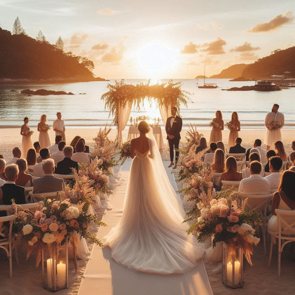 A Promise Under the Sunset, Amidst the beauty of a setting sun, a couple celebrates their love and commitment, marking the beginning of their lifelong journey together with heartfelt vows and a shared promise to cherish every moment.