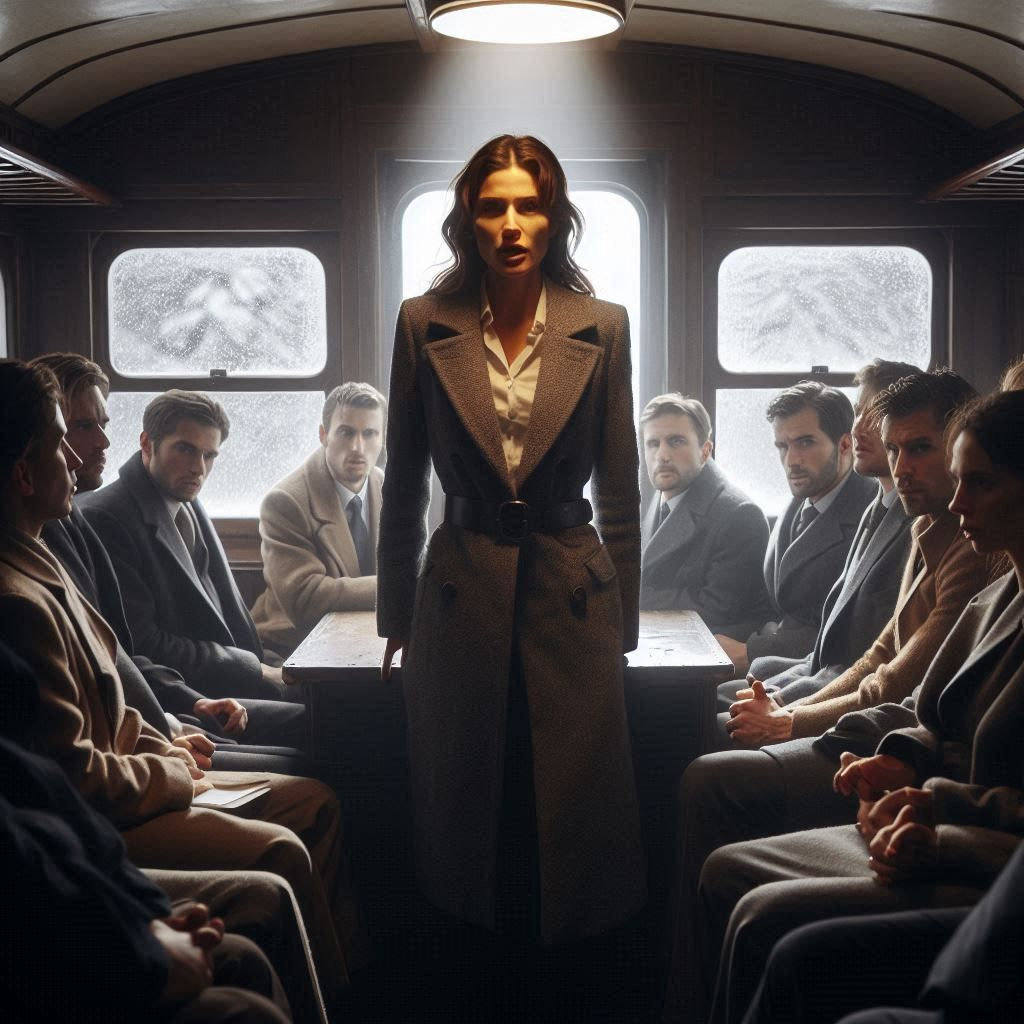 “Everyone stay calm!” I called out, my voice steady despite the chaos surrounding me. “I’m a detective. I need to ask questions.” As I began interviewing the passengers, I noticed their anxious glances and whispered conversations. Each person had their own story, but something didn’t add up.There was a nervous young woman clutching her handbag tightly, an older gentleman who claimed he had been asleep during the murder, and a suave man in a tailored suit who seemed far too composed for someone caught in such a dire situation. As I listened to their accounts, red flags began to rise; each story contained inconsistencies that hinted at deeper secrets.With the snow piling up outside and communication with the outside world severed, time was running out. The killer could strike again if they felt cornered. I knew I had to act fast. Gathering everyone in one car for a final confrontation, I laid out the evidence and asked pointed questions, watching for reactions.As tensions escalated and accusations flew, I felt the weight of the moment pressing down on me. It was then that I noticed something—a small detail that had slipped through the cracks. With sharp intuition and quick thinking, I unraveled the tangled web of deceit among strangers.