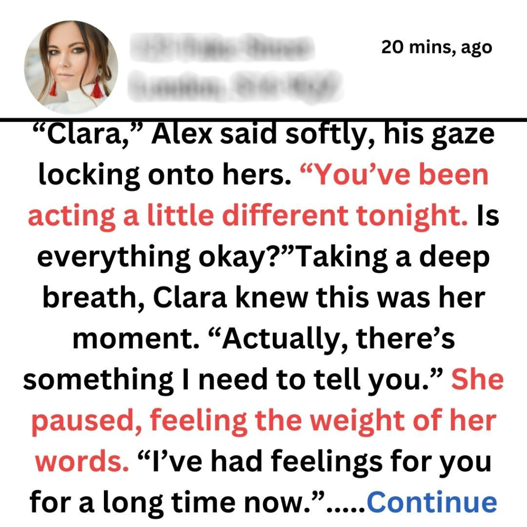 As she scanned the room, she spotted him—a tall figure with tousled dark hair, laughing with a group of friends. He wore a tailored suit that accentuated his athletic build, and Clara’s heart skipped a beat. Gathering her courage, she made her way through the crowd until she stood before him.“Hey, can I steal you for a dance?” she asked, trying to sound casual despite the butterflies fluttering in her stomach.Alex turned, surprise lighting up his eyes. “Of course! I’d love to.”As they glided onto the dance floor, Clara felt a rush of warmth as he took her hand. They moved gracefully together, their bodies swaying in sync with the music. The world around them faded away, and for a moment, it was just the two of them.“Clara,” Alex said softly, his gaze locking onto hers. “You’ve been acting a little different tonight. Is everything okay?”Taking a deep breath, Clara knew this was her moment. “Actually, there’s something I need to tell you.” She paused, feeling the weight of her words. “I’ve had feelings for you for a long time now.”Alex’s expression shifted from surprise to contemplation. “I had no idea,” he replied slowly. “I’ve always thought we had something special.”The music swelled around them as Clara’s heart raced. “So… what does that mean for us?”