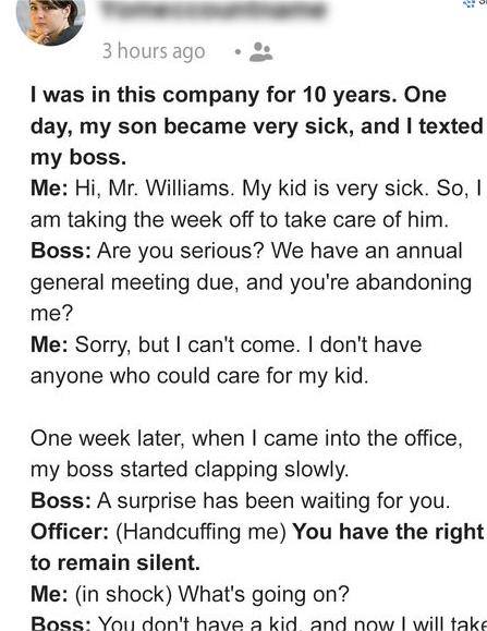 Boss Accused Me of Faking That I Have a Son and Got Me Arrested after I Asked For a Week off to Care For My Sick Kid