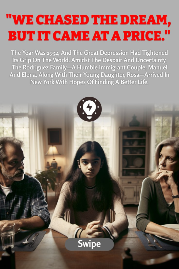 The year was 1932, and the Great Depression had tightened its grip on the world. Amidst the despair and uncertainty, the Rodriguez family—a humble immigrant couple, Manuel and Elena, along with their young daughter, Rosa—arrived in New York with hopes of finding a better life. The promise of the American Dream was their beacon of hope, but the harsh reality of their new world quickly set in. Jobs were scarce, food was rationed, and the winter winds bit through their thin clothing. Manuel took on backbreaking work at the docks, while Elena stitched garments for meager pay, all while shielding Rosa from the harshness of their struggles.