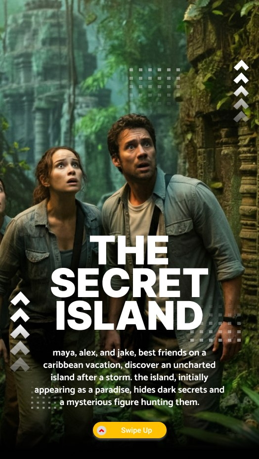 During a sailing vacation in the Caribbean, best friends Maya, Alex, and Jake find themselves veering off course after a sudden storm. They stumble upon a mysterious, uncharted island, hidden from the maps. At first, the island seems like paradise—pristine beaches, lush jungles, and an abundance of exotic wildlife. But as they explore deeper, they discover strange symbols carved into the rocks and remnants of an ancient civilization long forgotten by history.